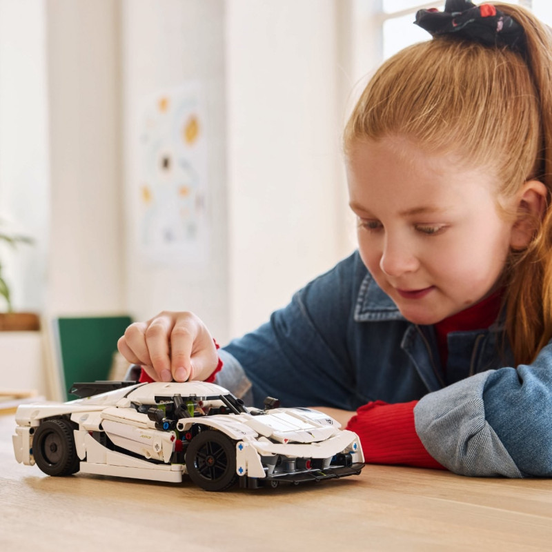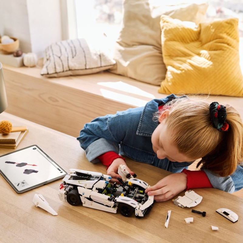 Dopřejte klukům a holkám od 10 let úchvatný stavitelský projekt: Sestavitelný model auta LEGO® Technic (42184) Bílé hyperauto Koenigsegg Jesko Absolut. Při skládání realistických detailů auta na děti čeká obohacující výzva – a stavění modelu je teprve začátek! Tato stavebnice je zmenšenou verzí jednoho z nejrychlejších hyperaut na světě, která smí jezdit po silnici, a pyšní se řadou funkcí, které mohou automobiloví nadšenci objevovat. Malí stavitelé mohou při stavbě pohyblivého motoru V8 a diferenciálu prozkoumat řadu technických konceptů. Pak otestují řízení pomocí odnímatelného knoflíku, který lze vložit do přední části vozu. Úchvatnou vychytávkou v této stavebnici hyperauta pro děti je systém synchro-helixových dveří, které se otevírají do úhlu 90 stupňů směrem ven, stejně jako u skutečného hyperauta. Tento interaktivní model auta představuje skvělý dárek pro děti, které milují vozidla. Součástí je aplikace LEGO Builder, která stavitelům umožňuje přibližovat a otáčet modely ve 3D a sledovat svůj postup.