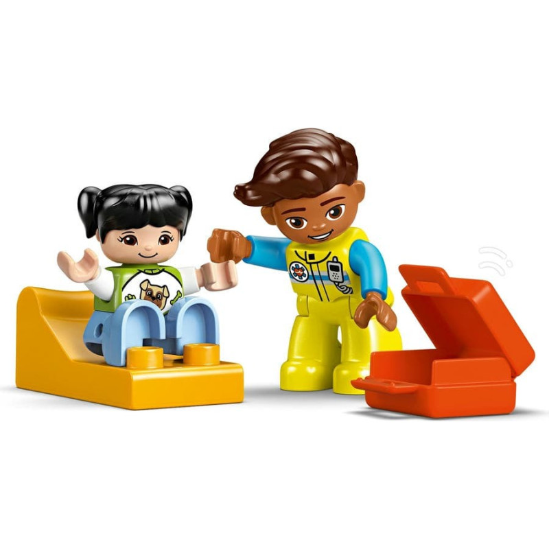 Starostlivé děti si užijí hraní napínavých záchranářských scén se stavebnicí Sanitka a řidič (10447). Součástí je pojízdná sanitka a 2 figurky LEGO® DUPLO®, záchranář a dívka, se kterými si děti užijí kreativní hru na postavy. Tato kreativní hračka LEGO DUPLO představuje skvělý dárek pro malé děti, které mají rády hry na rozvoj sociálních a emočních dovedností, a pomůže jim prohlubovat empatii. Součástí návodu na stavění je tištěné herní kolečko, se kterým rodiče a děti prozkoumají různé emoce postavičky holčičky. Děti s jeho pomocí vyjádří své pocity při tom, když se někdo necítí dobře, nebo jak se cítily, když poprvé viděly sanitku. Stavebnice také pomáhá rozvíjet logické myšlení při sestavování sledu událostí a jemné motorické dovednosti při otevírání střechy sanitky, přes kterou umístí figurku na sklápěcí lůžko. Tato vzdělávací hračka také pomáhá malým dětem rozvíjet sociální dovednosti při rozhodování, jak bude řidič sanitky zacházet s pacientkou.