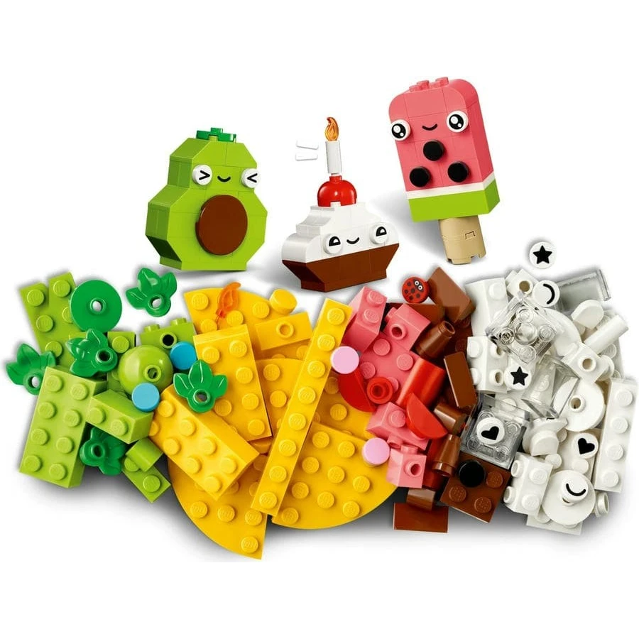 Všestranná stavebnice LEGO® Classic (11039) Kreativní jídlo je ideální pro děti od 4 let. S touto nápaditou hračkou si děti postaví řadu zábavných postaviček z jídla a užijí si celé hodiny hraní. Díky nekonečným možnostem zábavného stavění, přestavování a objevování tato stavebnice LEGO pro začínající stavitele pomáhá rozvíjet sebevědomí, soustředění a schopnost řešit problémy. Děti si pomocí pestrobarevných a poutavých kostek a speciálních dílků, jako jsou oči, ústa a řada dekorativních prvků, postaví 4 roztomilé hračky ze stavebnice Kreativní jídlo: Cupcake, zmrzlinu, avokádo a taco. Kreativní zábava bude pokračovat, když děti kostky promíchají a přestaví modely na dort s posypem, bubble tea, hrušku a panini. Až děti získají větší sebevědomí při stavění, mohou podle intuitivního návodu na stavění měnit jejich výrazy, tvary nebo barvy a poskládat si nové kamarády: Zelenou zmrzlinu, krabici džusu, kousek melounu, čokoládovou tyčinku a mega sendvič.