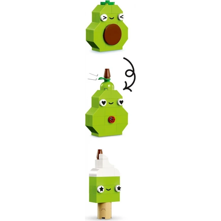 Svoláváme všechny milovníky jídla! Užijte si spoustu zábavy s tímto roztomilým sestavitelným cupcakem, zmrzlinou, avokádem a tacem! Pak promíchejte kostky a přestavte je na dort s posypem, bubble tea, hrušku a panini! Kostky pak znovu promíchejte a vychutnejte si nekonečné možnosti stavění při skládání zelené zmrzliny, krabice džusu, plátku melounu, čokoládové tyčinky a mega sendviče!