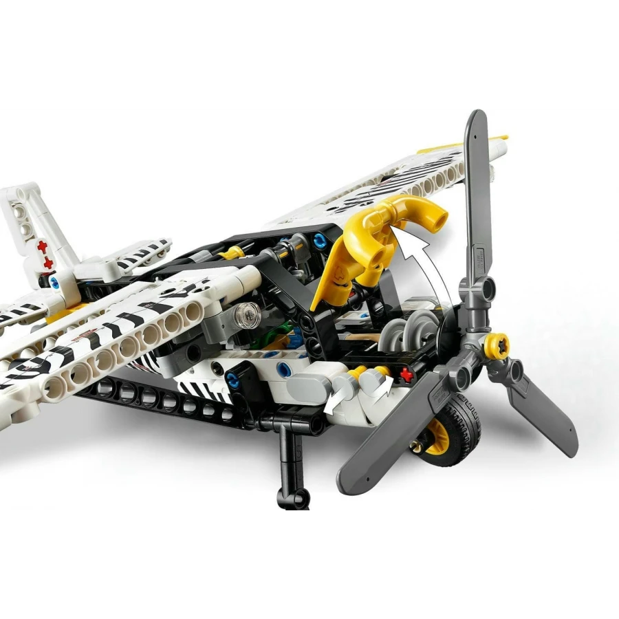 Vzlétněte do oblak se stavebnicí LEGO® Technic Letadlo do vzdálených oblastí. Stisknutím páčky aktivujte otočnou vrtuli. Seřiďte křidélka na bočních křídlech pro správné řízení a zadní křídlo na převýšení. Pak otevřete kryt motoru a obdivujte 4válcový pístový motor. Můžete startovat!