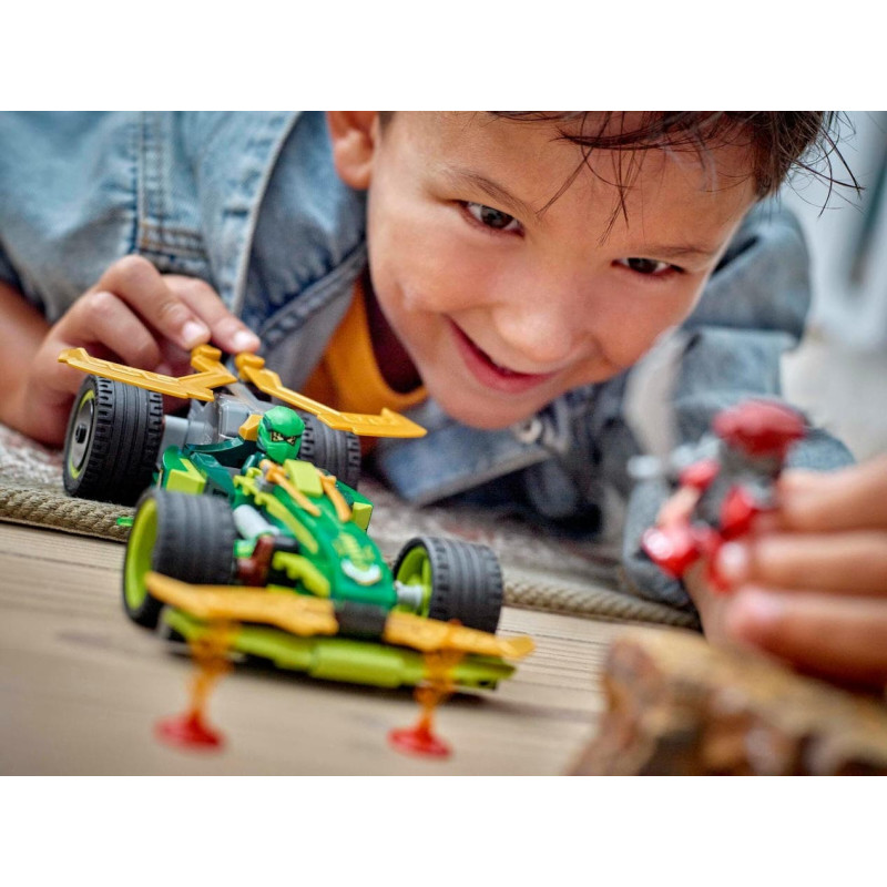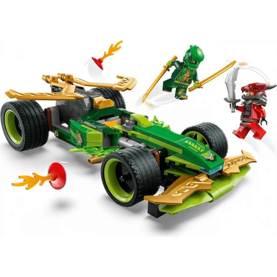 Vrhněte se do akce s Lloydem v jeho úžasném natahovacím závodním autě! Lloyd je vyzbrojen 2 zlatými katanami a je připraven na velkolepou bitvu proti démonickému dračímu bojovníkovi, který chce vládnout nad sloučeným světem NINJAGO®. Chcete dupnout na plyn? Naskočte do kokpitu, potáhněte autíčko a sledujte, jak se řítí vpřed neuvěřitelnou rychlostí! Pomůžete Lloydovi zastavit dračího bojovníka?