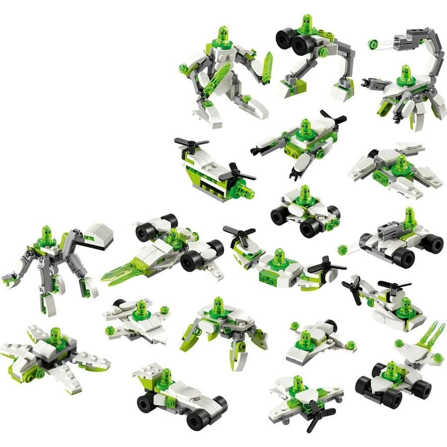 • Postavte si – Robota, turbo tryskáč, tryskáč, vrtulník, vesmírnou stíhačku, raketoplán, dragster, elektrický tank, auto na dálkové ovládání, motokáru, ponorku, želvího robota, dvounohého robota, chodce, škorpióna a chodícího pavouka
