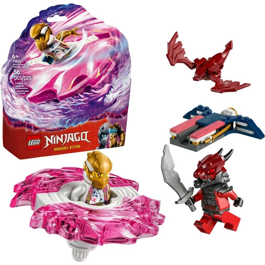Připravte Soru na akční bitvu proti zlotřilému dračímu bojovníkovi! Umístěte mistryni technologie do dračího Spinjitzu spinneru a stiskněte tlačítko odpalovače. Sledujte, jak rychle vystřelí a roztočí se, aby porazila svého zlého protivníka. Když spinner zasáhne svůj cíl, je možné, že odletí 2 prvky síly. Sora musí zvítězit, aby zachránila nový svět NINJAGO®!