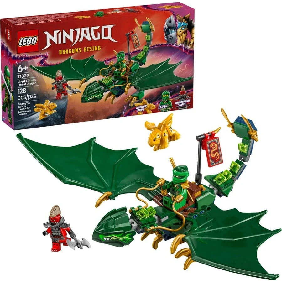 Kluci a holky od 6 let se se stavebnicí Lloydův zelený lesní drak (71829) vznesou do oblak a připomenou si napínavé letecké scény z 3. řady televizního seriálu NINJAGO® Dračí povstání. Součástí je impozantní drak s pohyblivým ocasem, krkem, nohama, velkými křídly a rukama, a navíc sedlo na jeho hřbetu, na které lze usadit minifigurku. Tato stavebnice LEGO® NINJAGO s drakem obsahuje také 2 minifigurky: Lloyda vyzbrojeného zlatou katanou a zlotřilého dračího válečného zvěda se sekerou, a nechybí ani zlatý model dračího mláděte, se kterým si děti vyzkouší, jaké to je pečovat o malého tvora. V dalších fantastických stavebnicích z řady LEGO NINJAGO (prodávají se samostatně) s nindžovskou tematikou najdete robotické obleky, vozidla a chrámy a děti si užijí hodiny zábavného hraní ve fantastickém světě se svými oblíbenými hrdiny. Každou akční stavebnici můžete sestavit s pomocí aplikace LEGO Builder, která vám a vašemu dítěti ukáže snadnou a intuitivní cestu stavitelským dobrodružstvím.