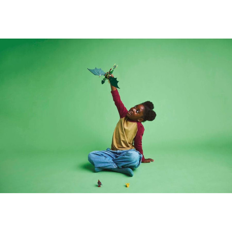 • Pohyblivý drak NINJAGO® – Sestavitelný model Lloydův zelený lesní drak s pohyblivým ocasem, krkem, nohama, rukama a velkými křídly má sedlo, aby se na jeho záda mohla usadit minifigurka