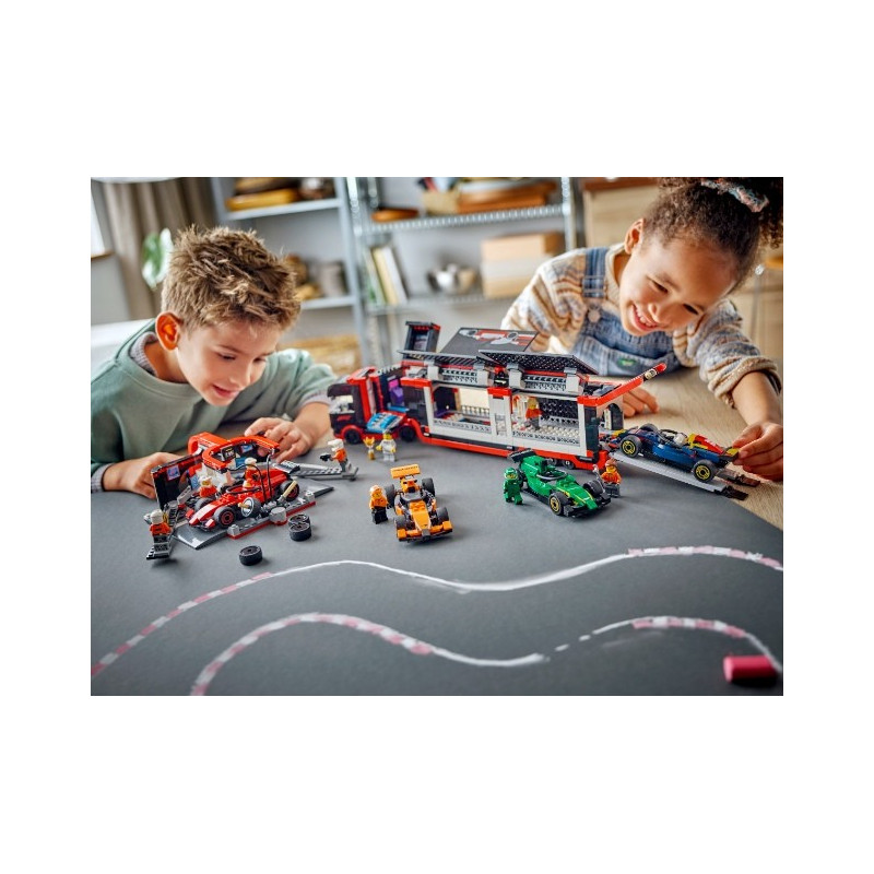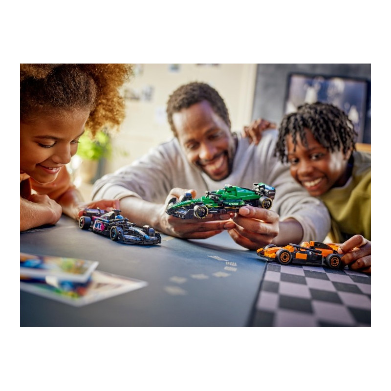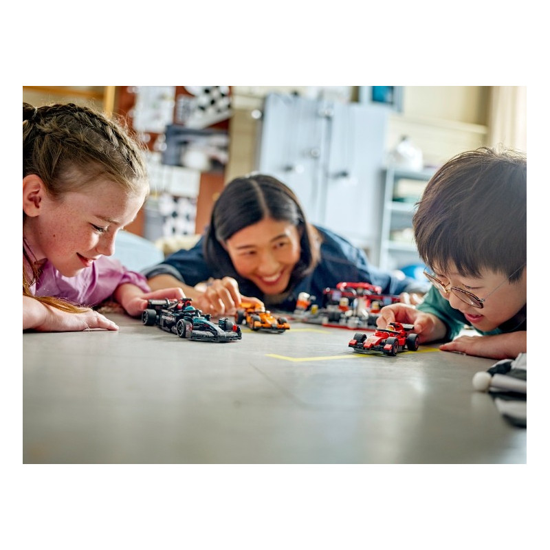• Ještě rychlejší akce s F1® – Nenechte si ujít i další stavebnice LEGO® Formula 1® (prodávají se samostatně), které si můžete postavit, vystavit a závodit s nimi s celou rodinou