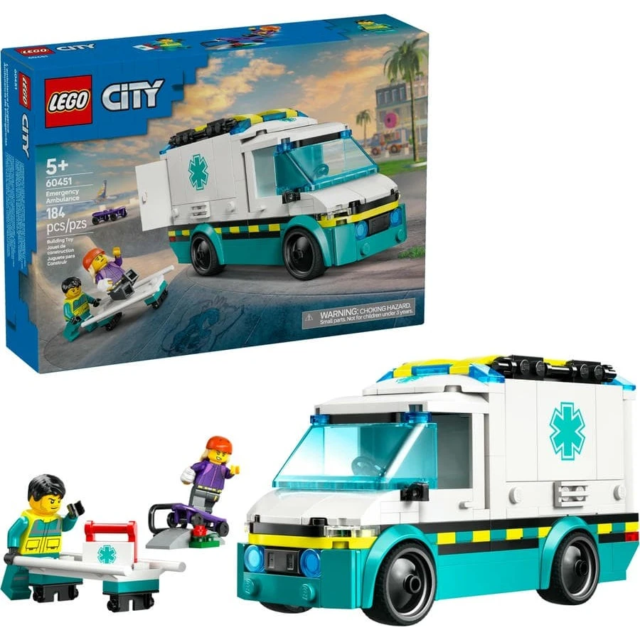 Děti od 5 let si užijí akční záchranné mise se stavebnicí LEGO® City (60451) Sanitka. Malí záchranáři sklopí boční panely a otevřou zadní dveře, aby se snadno dostaly k nosítkům a zdravotnickému vybavení, včetně injekční stříkačky, obvazu a zdravotnické brašně. Součástí stavebnice je také skateboard a skate rampa a minifigurka skateboardisty a záchranářky pro zábavné hraní a vyprávění příběhů. Tištěný návod na stavění tohoto modelu LEGO® City najdete v krabici. V aplikaci LEGO Builder najdete také 3D návod, který dětem umožní prozkoumávat a ukládat si virtuální stavebnice, sledovat postup stavění a přibližovat, otáčet a prohlížet si modely ze všech úhlů, zatímco na nich pracují. Stavebnice LEGO City Skvělá vozidla přináší hračky plné úžasných funkcí pro neomezené hraní na zemi, ve vzduchu i na vodě. Děti můžou tuto stavebnici Sanitky přidat k dalším stavebnicím z řady LEGO City (prodávají se samostatně) a užívat si ještě úžasnější dobrodružství!