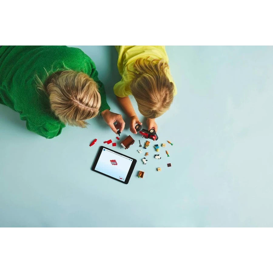 • Stavebnice traktoru pro děti od 4 let – Součástí stavebnice je začátečnická kostka LEGO®, jednoduchý obrázkový návod na stavění a 3D digitální návod v aplikaci LEGO Builder