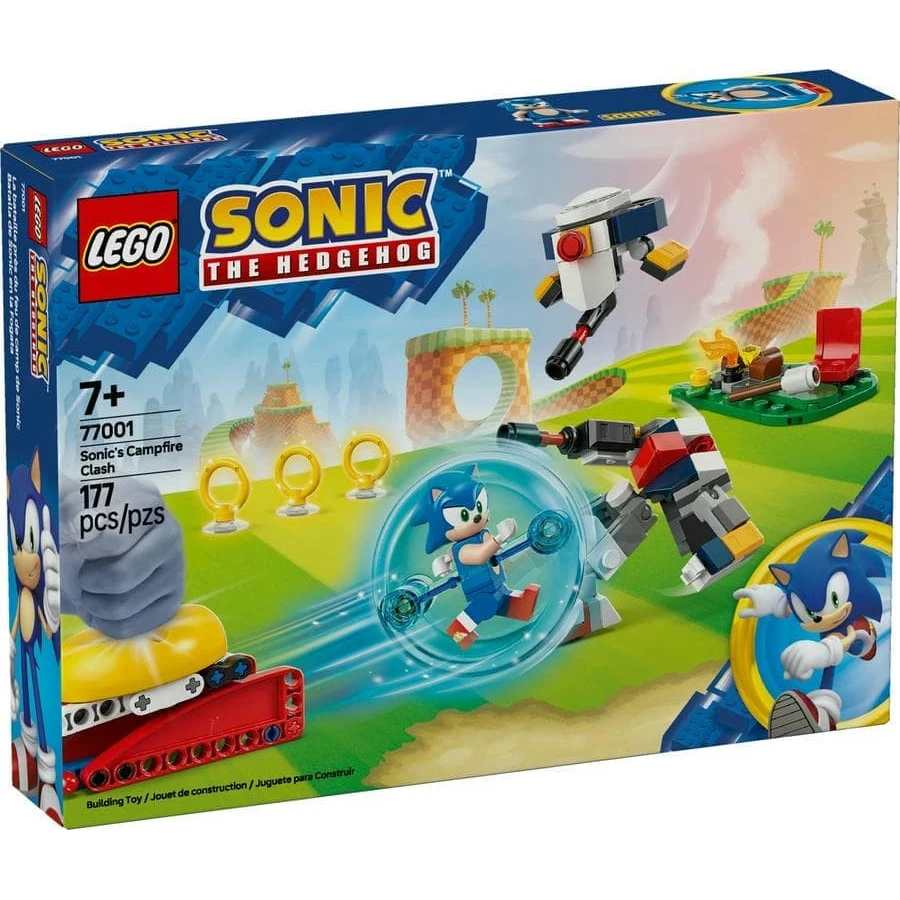 Milovníci videoher od 7 let se se sběratelskou stavebnicí LEGO® Sonic the Hedgehog™ (77001) Sonic a souboj u táboráku můžou těšit na zábavná dobrodružství. Tato stavebnice LEGO® s postavou Sonic the Hedgehog™ obsahuje model táboráku, vystřelovač koulí rychlosti, kouli rychlosti a doplňky včetně Chaos Emerald a 3 zlatých prstenů. Tato videoherní stavebnice obsahuje také 4 postavy ze světa Sonica: Minifigurku Sonica, „létající“ robotický dron G.U.N. Beetle, pohyblivou figurku robota G.U.N. Huntera a Tockyho.