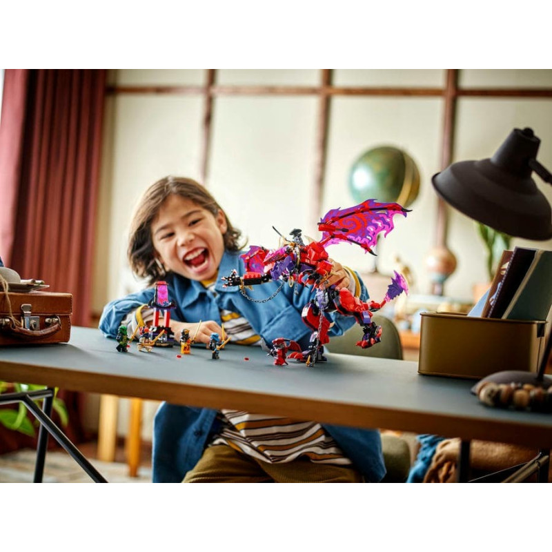 Děti si se stavebnicí LEGO® NINJAGO® Drak chaosu Thunderfang s 6 minifigurkami připom