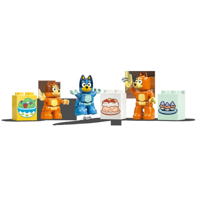 Představte batolatům zábavnou stavebnici, se kterou je čeká dvojnásobná porce zábavy! Dům Blueya paměťová hra (10459) přináší hned 2 zábavné aktivity v jedné barevné stavebnici. Tato interaktivní hračka je plná herních možností. Děti od 3 let si můžou s tuto dobrodružnou hračkou hrát na postavy díky 3 figurkám – Bluey, Bingo a máma Chilli – a spoustě doplňků z televizního seriálu Bluey. Nebo si se svou rodinou zahrají zábavnou paměťovou hru! Rodiče schovají kostky a figurky Bluey za okna domu a děti pak roztočí kolo, aby zjistily, které dílky mají najít. Při otevírání oken rozvíjejí jemné motorické dovednosti a schopnost porovnávání, přiřazování a komunikace, aby zjistily, jestli našly správný dílek. Pak zapojí paměť a zkusí si zapamatovat, kde se skrývají ostatní předměty, kterým hledají pár. Stavebnice obsahuje 83 dílků.