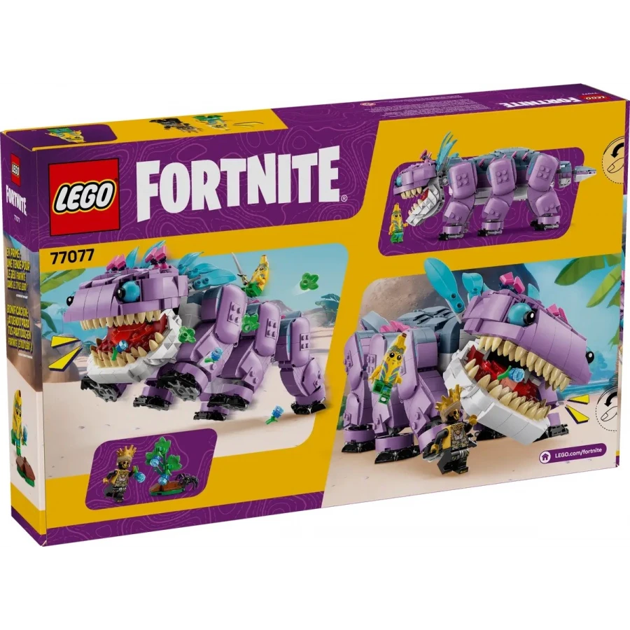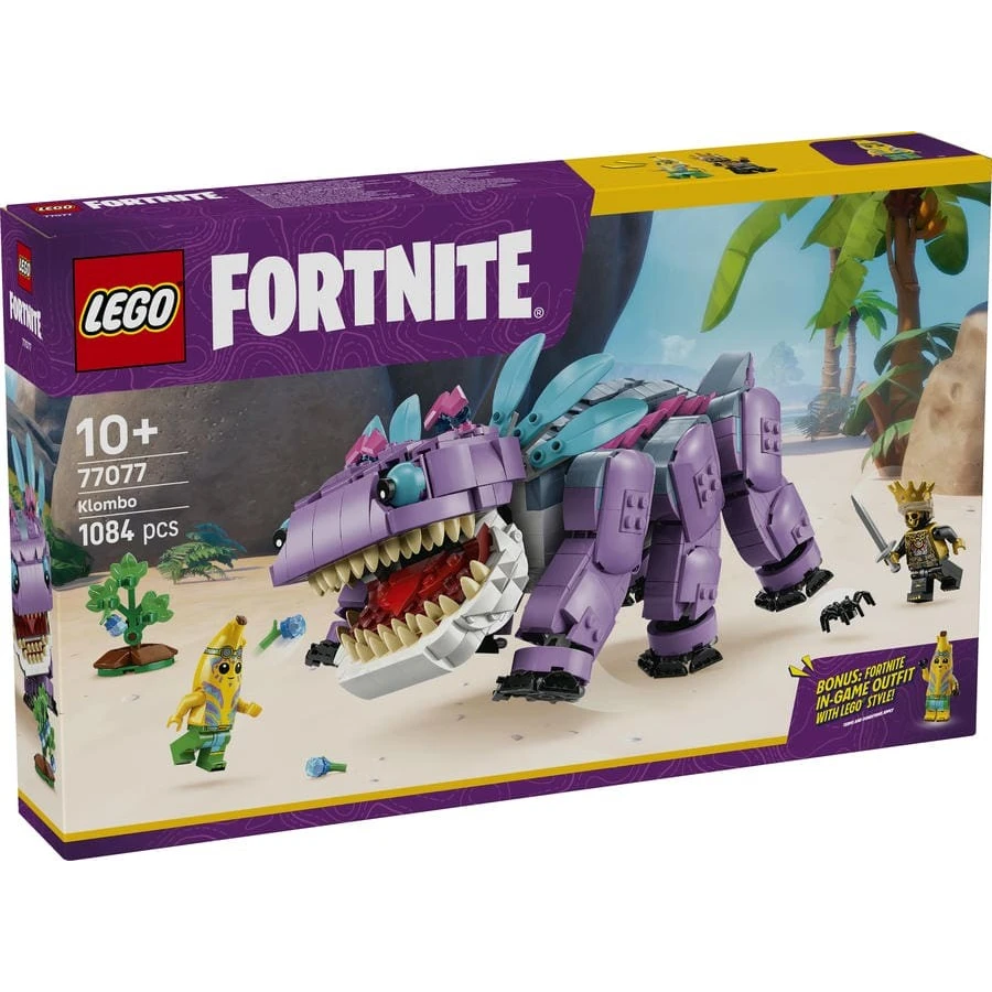 Fanoušci a gameři od 10 let si se stavebnicí LEGO® Fortnite® (77077) Klombo postaví kultovní postavu LEGO® Fortnite. Klombo je velké stvoření z videohry LEGO Fortnite a díky této stavebnici si ho holky a kluci můžou postavit z kostek LEGO. Děti siužijí spoustu zábavy při stavění modelu podle videohry Fortnite a objeví všechny jeho skvělé detaily, včetně pohyblivých nohou, otevírající tlamy a otáčejícího se ocasu. Součástí stavebnice je také malý keř Klomberry s odnímatelným ovocem Klomberries. Děti si tak můžou hrát na to, že Klomba vyruší, aby se naštval, a pak ho nakrmí ovocem, aby si Klomba udobřily. Stavebnice obsahuje také minifigurky Island Adventure Peelyho a Ora, které lze připevnit na záda Klomba a užít si s nimi tvořivé hraní na postavy. Tato úžasná stavebnice zvířátka poslouží jako krásný dárek pro gamery všech věkových kategorií a obsahuje skvělý digitální bonusový předmět. Hráči naskenují QR kód v návodu ke stavění a odemknou si outfit pro Island Adventure Peelyho ve videohře LEGO Fortnite. Stavebnice obsahuje 1084 dílků.