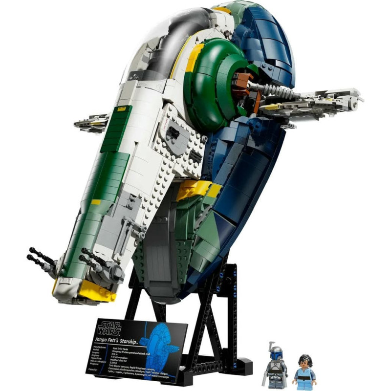 Pociťte napětí ze scén lovu odměn z filmu Star Wars: Klony útočí při stavění modelu LEGO® Star Wars™ (75409) Jango Fett a jeho vesmírná loď třídy Firespray z řady Ultimate Collector Series. Tento úchvatný dárek pro kreativní dospělé fanoušky Star Wars a sběratele modelů UCS představuje stavitelskou výzvu plnou autentických detailů této ikonické vesmírné lodi. Stavebnice měří přes 44 cm na délku a pyšní se propracovaným kokpitem s odnímatelnou částí pro minifigurky LEGO Janga Fetta a mladého Boby Fetta, hlavním vchodem, který lze stlačit, přihrádkou se seismickou náloží a nastavitelnými blasterovými kanóny. Vystavte si model Star Wars v režimu přistávání nebo ve vzpřímeném režimu na sestavitelném stojanu a sledujte, jak její křídla zůstanou ve vodorovné poloze, když loď nakloníte.