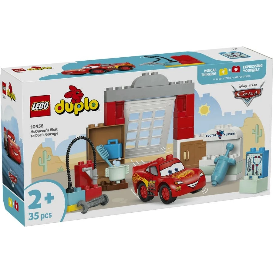 Malí stavitelé se se stavebnicí LEGO® DUPLO® │ Disney a Pixar Auta (10456) McQueen a návštěva v garáži doktora Hudsona naučí starat o své oblíbené závodní autíčko. S touto sadou se děti přenesou do světa filmu Auta od studia Disney a Pixar a naučíse o auto pečovat prostřednictvím kreativního hraní. Nápadité hraní začne, jakmile auto Blesk McQueen prosviští garážovými vraty v této stavebnici. Batolata si zamilují ježdění s autem do garáže a ven skrz kývající se dveře. Zdokonalí své jemné motoric ké dovednosti používáním hasáku, otevíráním a zavíráním dveří skříňky a odepínáním hadice sestavitelné automyčky, aby umyly Bleska McQueena po velkém závodě. Fantastické stavebnice LEGO® DUPLO® pomáhají batolatům rozvíjet základní dovednosti. Tatostavebnice rozvíjí i jejich emocionální schopnosti, když si děti hrají na péči o model autíčka, aby zajistily jeho špičkový výkon na závodech. Stavebnice obsahuje 35 dílků.