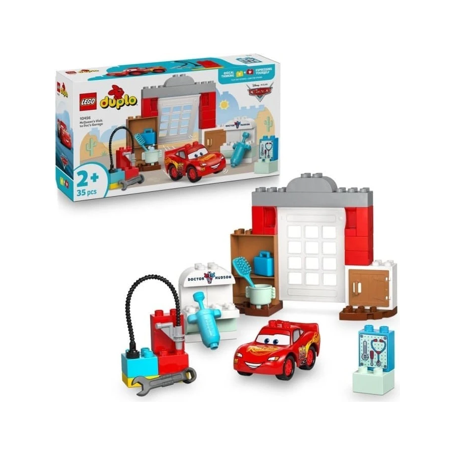• Stavebnice pro malé fanoušky filmu Auta – Malé děti se vžijí do role mechanika se stavebnicí LEGO® DUPLO® │ Disney a Pixar Auta McQueen a návštěva v garáži doktora Hudsona