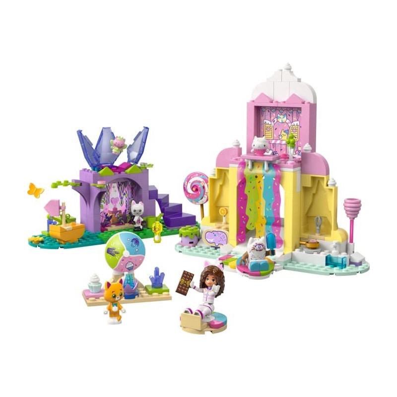 Prozkoumejte barevnou Cukrovou horu, kde se Gábi, Pandy Ťapka a kamarádi sklouznou po cukrovém vodopádu na donutech a vydají se na sladkou cestu přes dortové kopce a obří zmrzlinové kornouty. Odhalte jiskřivá tajemství Kočičí zahrádky, kde Víla kočička sedí na svém křišťálovém květinovém trůnu. Jste připraveni vstoupit do sladkého, třpytivého světa zábavy z filmu Gábinin kouzelný domek ve filmu?