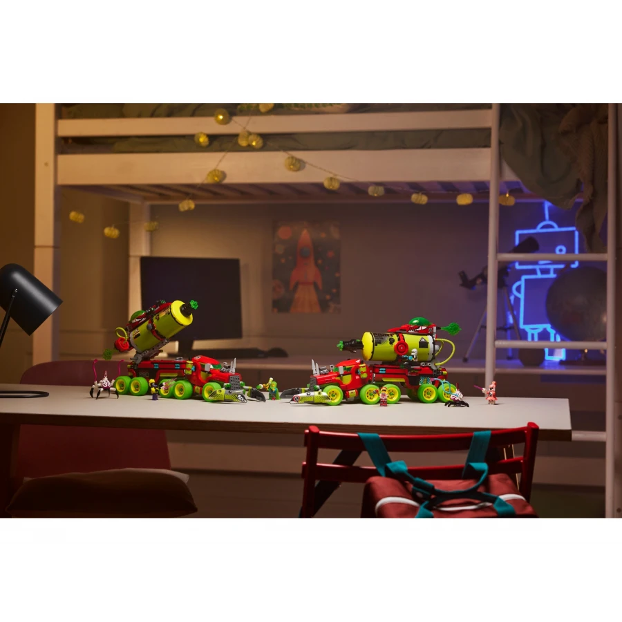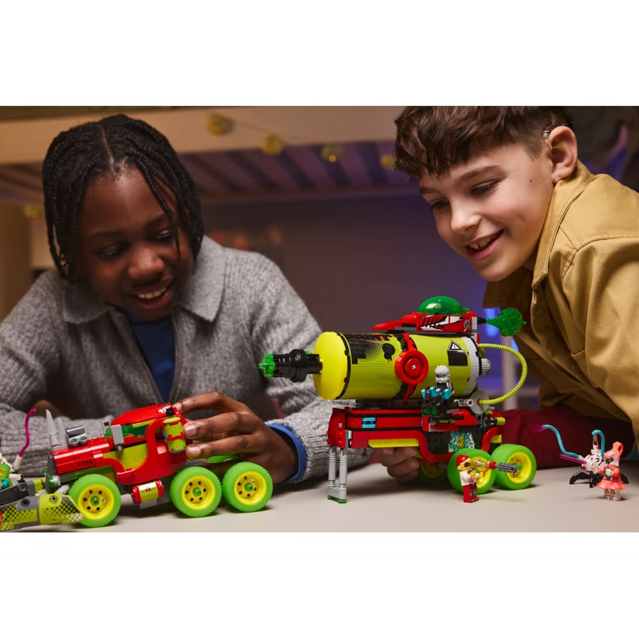 • Přestavitelný model vozidla – Fanoušci LEGO® DREAMZzz™ si užijí spoustu zábavy při stavění modelu vozidla, který pak přestaví na obří barvu ve spreji nebo raketomet v podobě spreje