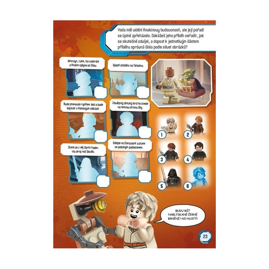 Přidej se k mladému Anakinu Skywalkerovi při jeho prvních dechberoucích dobrodružstvích na Tatooinu! Sestav jeho opravářského droida i pracovní ponk a pak se ponoř do této jedinečné knihy ze světa LEGO® Star Wars™. Prožij s Anakinem legendární závod kluzáků Boonta Eve, přečti si o monumentálním souboji nad Naboo a zabav se hádankami, komiksem a aktivitami nabitými akcí!