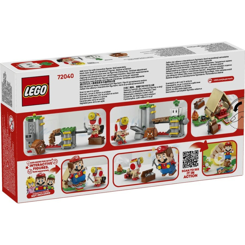 Vydejte se na výlet s Captain Toadem! Postavte stan, připravte táborák a uvařte si jídlo. Zbořte most, abyste svrhli Goombu, a pak na něj hoďte turnip. Hledejte diamanty a ukládejte je do truhly s pokladem. Pro interaktivní digitální hru pozvěte do tábora figurku LEGO® Mario™, LEGO® Luigi™ nebo LEGO® Peach™ (figurky nejsou součástí balení) – skočte na akční prvek stanu a porazte nepřátele.