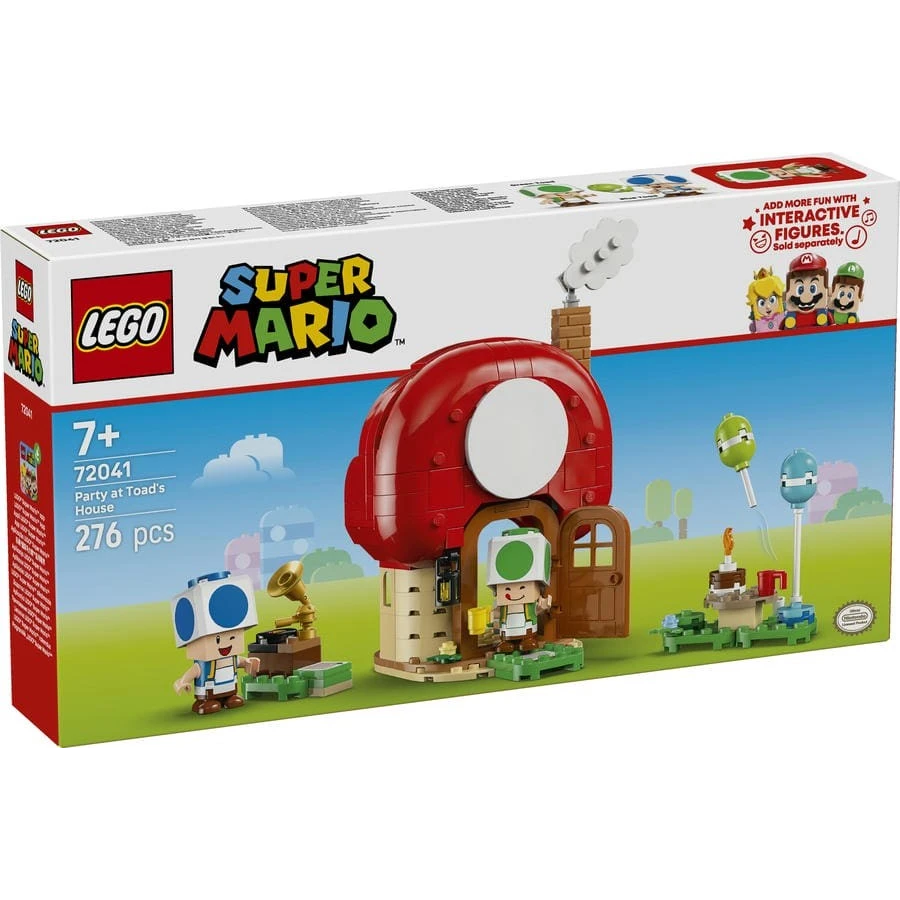 Uspořádejte párty v Toadově domku s touto fantastickou stavebnicí LEGO® Super Mario™ (72041) pro děti. Úžasný dárek pro kluky, holky a fanoušky od 7 let, který obsahuje propracovaný domek Toada s kuchyní a ložnicí (s obrazem Peachina hradu na stěně) a odnímatelným nábytkem pro snadné hraní. Venku na vás čeká piknikový stůl se sedadly pro figurky Blue Toada a Green Toada, sestavitelný gramofon s otáčecí deskou a doplňky na párty. Přidejte k tomuto setu figurku LEGO® Mario™, LEGO® Luigi™ nebo LEGO® Peach™ (ze setů 71439, 71440, 71441 nebo 72043 – prodávají se samostatně) a užijte si digitální interaktivní hraní, včetně písniček, které začnou hrát při šlápnutí na akční prvek gramofonu a zvuku zvonku na prahu domu. Návod na stavění této stavebnice Nintendo® LEGO najdete v krabici nebo v aplikaci LEGO Super Mario. Nenechte si ujít další satevbnice LEGO Super Mario (prodávají se samostatně). Tato stavebnice obsahuje 276 dílků.