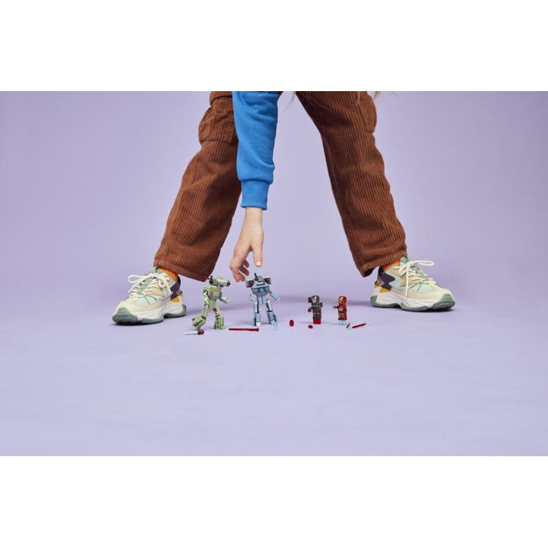 • Minifigurky LEGO® ǀ Marvel – Součástí je minifigurka Iron Mana s modrými blastery na rukoua nohou a laserovými zbraněmi a minifigurku War Machine s červenými blastery na rukou a nohou a vystřelovačem