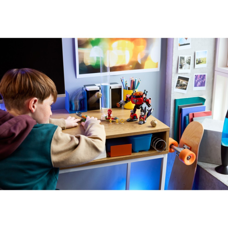 • Stavebnice se Sonicem – Potěšte děti od 8 let a fanoušky videoherní stavebnicí Knuckles vs. Dr. Eggman: Robotický oblek Egg Crusher s řadou možností hraní a 2 ikonickými postavami, které inspirují vymýšlení zábavných příběhů
