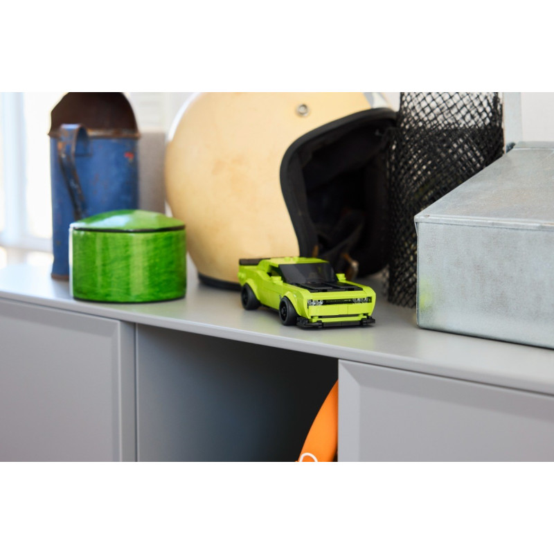 • Výkonný sporťák pro malé stavitele – Děti od 9 let a fanoušci výkonných sporťáků si postaví a vystaví závodní model LEGO® Speed Champions Sportovní auto Dodge Challenger SRT Hellcat