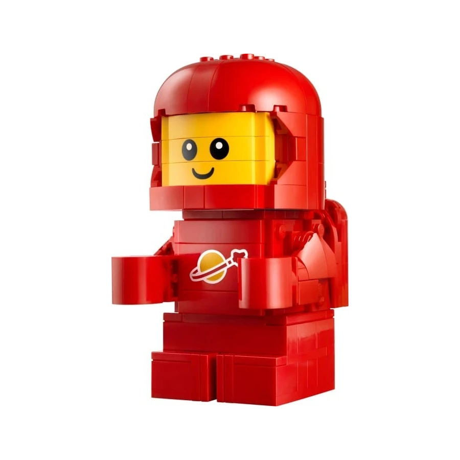 Vesmírné dítě – Tato figurka LEGO® vesmírného průzkumníka má usměvavý obličej a je oblečená v parádním červeném oblečení s vesmírným logem