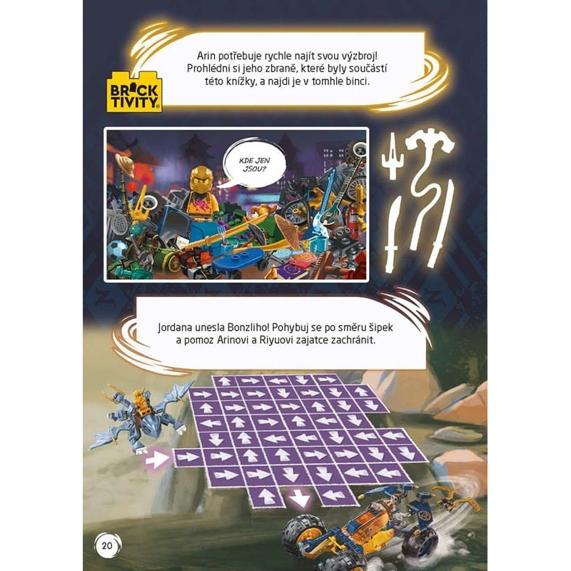 Mladý Arin si plní sny tím, že se z něj stává člen nindžovského týmu! Velmi brzy ovšem zjistí, že schopnosti, které nově ovládl, jej nijak nepřiblíží k jeho hlavnímu cíli – najít rodiče. Ve snaze obrátit štěstí na svou stranu se spojí se svým nepřítelem, Rasem. Prožij s Arinem úchvatná dobrodružství, vyřeš strhující aktivity a přečti si zábavný příběh i komiksy o Arinově turbulentním vztahu s jeho novým spolucestujícím. Sestav si minifigurku Arina a s pomocí několika z jeho zbraní vyřeš zadané úkoly!