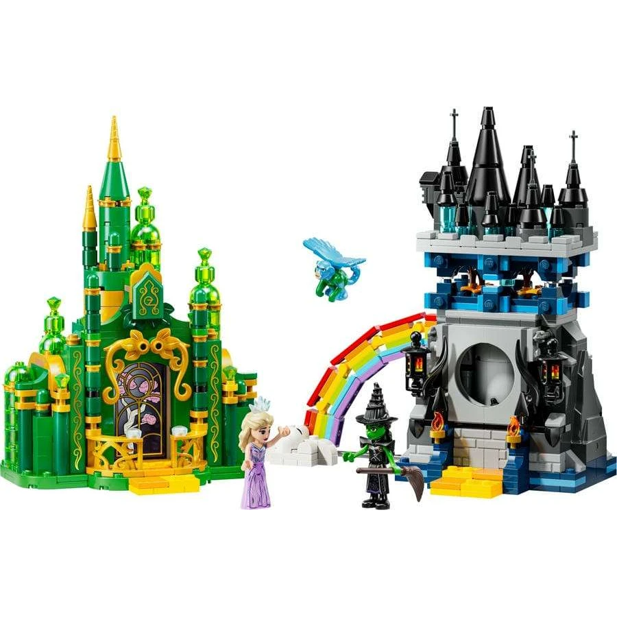 • Dárek LEGO® Wicked – Emerald City a zámek Kiamo Ko obsahuje 2 stavebnice s minipanenkami LEGO Wicked Elphaby a Glindy, figurku létající opice a sestavitelnou duhu