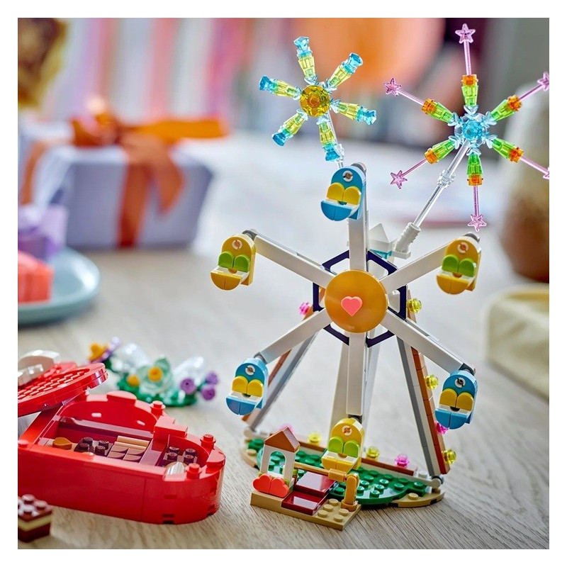 • Symbol srdce – Ruské kolo je zdobené symbolem srdce, které se objevuje na všech produktech z řady LEGO® Oslava