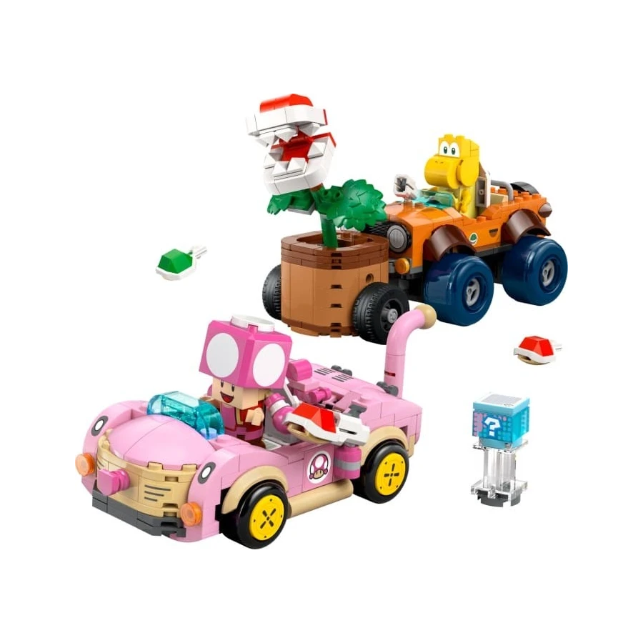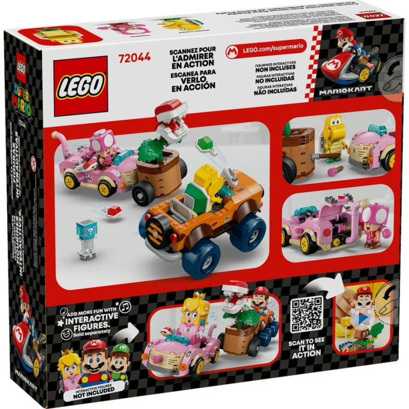 Vydej se na závody Mario Kart™ s Koopa Troopou v motokáře Tanooki Kart a Toadette v Cat Cruiseru. Jezděte, driftujte a vystřelujte z motokár granáty. Umístěte figurku LEGO® Mario™, LEGO® Luigi™ nebo LEGO® Peach™ (figurky nejsou součástí balení) domotokáry, spusťte zvuky a vizuální efekty Mario Kart a získejte náhodné předměty z krabice Item Box! Která motokára dostane Piranha Plant? To je na vás!