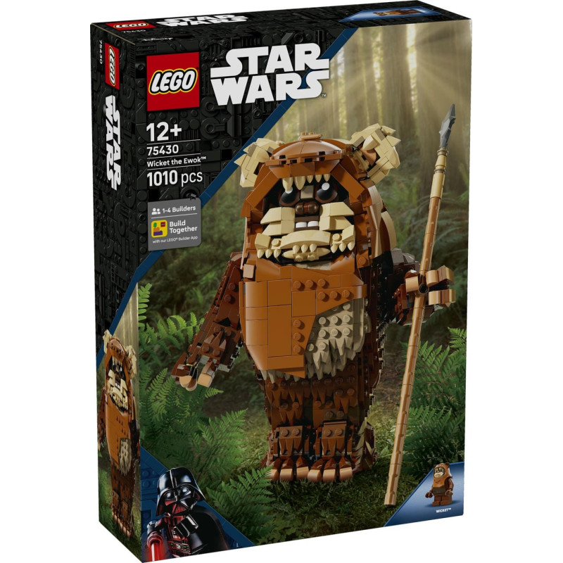 Děti si zamilují Ewoka Wicketa díky této stavebnici LEGO® Star Wars™ (75430). Model představuje krásný dárek LEGO Star Wars pro kluky, holky a každého fanouška od 12 let a poslouží jako roztomilá dekorace na stůl, která všechny ohromí a připomene jim kultovní scény z filmu Star Wars: Návrat Jediů. Tato figurka z kostek LEGO se pyšní řadou autentických detailů a nechybí jí sestavitelný oštěp a pochoutku (kterou mu dala princezna Leia v lese na Endoru). Roztomilou stavebnici LEGO Star Wars doplňte o minifigurku Ewoka Wicketa a informační cedulku. Stavějte společně s přáteli a rodinou s aplikací LEGO® Builder, která nabízí zábavný společný stavitelský zážitek. Stavebnice obsahuje 1010 dílků.