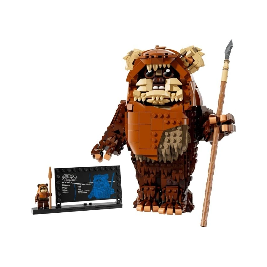 Vystavte si Ewoka Wicketa na stole, kde vám bude dělat společnost! Postavte si tuto oblíbenou postavu a připomeňte si Wicketovo první setkání s princeznou Leiou v lesích Endoru. Vybavte ho oštěpem a nabídněte mu pochoutku (stejně jako Leia!). Roztomilý model doplňuje minifigurka LEGO® Wicketa a informační cedulka. S aplikací LEGO Builder si užijete zábavu při stavění společně s přáteli a rodinou.