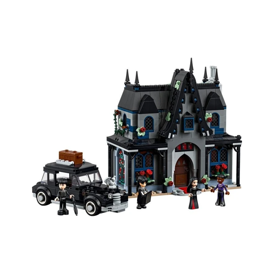 • Stavebnice Wednesday pro děti – Stavebnice obsahuje domek s 6 pokoji s otevíracími stranami, kuchyní, prostornou koupelnou a obývacím pokojem s krbem a navíc auto s místy pro 4 minipanenky