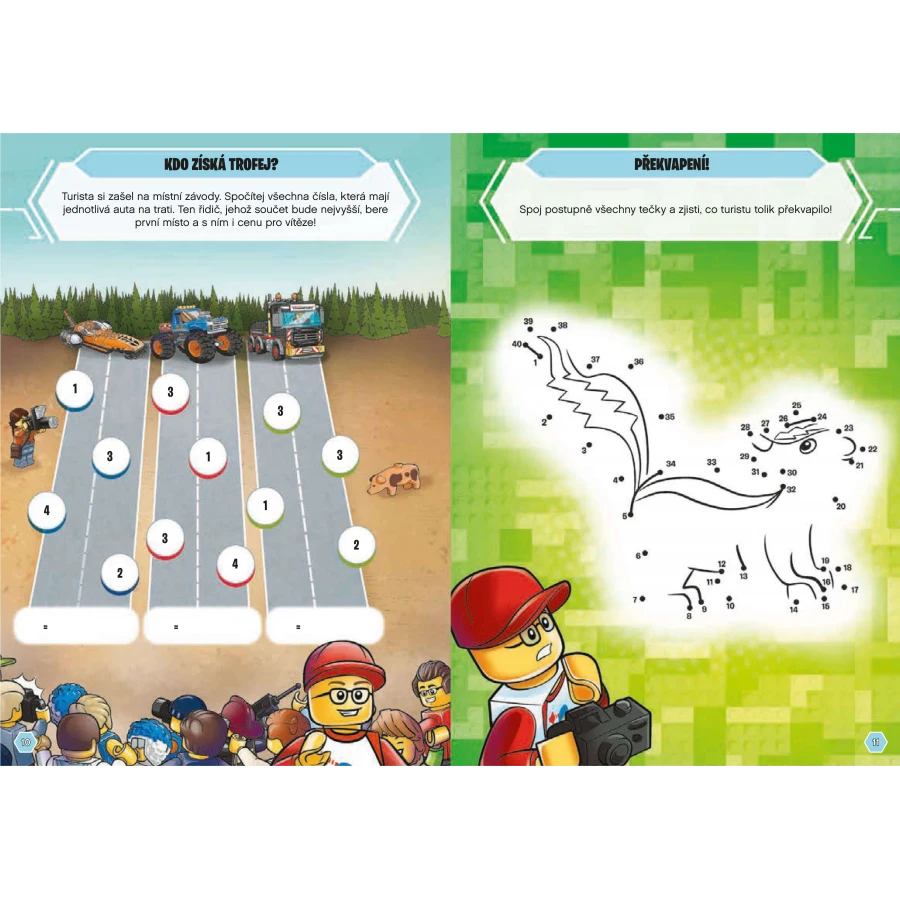Vítej v LEGO® City! Užij si výlet v tomto fantastickém městě z kostiček, kde tě čeká spousta překvapení – od neuvěřitelných závodů až po plavbu na vodě. Přečti si legrační komiks, vyplň zábavné aktivity, a hlavně nezapomeň sestavit minifigurku turisty. Jako jeho cestovatelský parťák si totiž užiješ báječné chvilky!