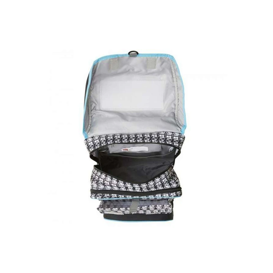 Tato taška má prostor rozdělen na dvě oddělené části zipem. V předu pod víkem tašky je kapsa na penál. Na přední části je termo kapsa pro box na svačinu.